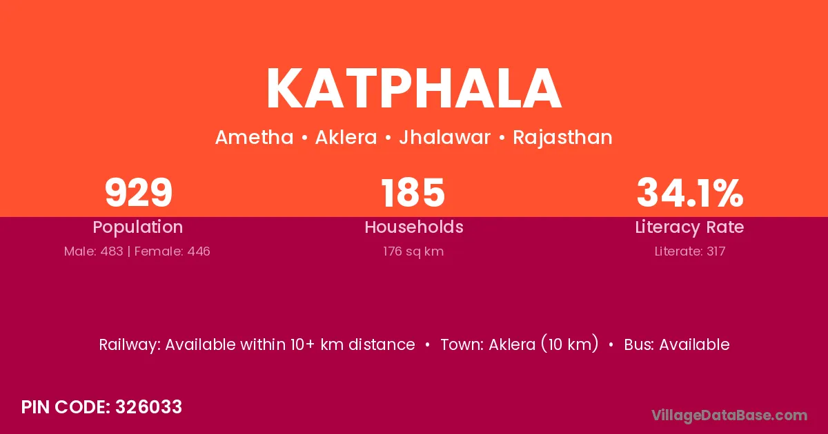 Aklera (10 km) is the nearest town to Katphala village for major economic activities and is located approximately 10 km away.