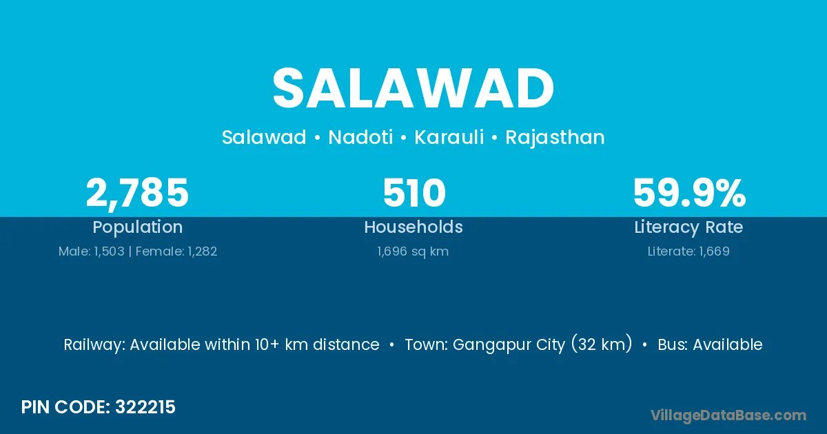 According to Census 2011 information, the village code of Salawad village is 326033.