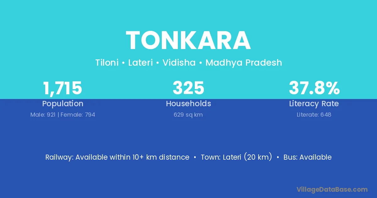 Bhawani Mandi (101 km) is the nearest town to Tonkara village for major economic activities and is located approximately 101 km away.