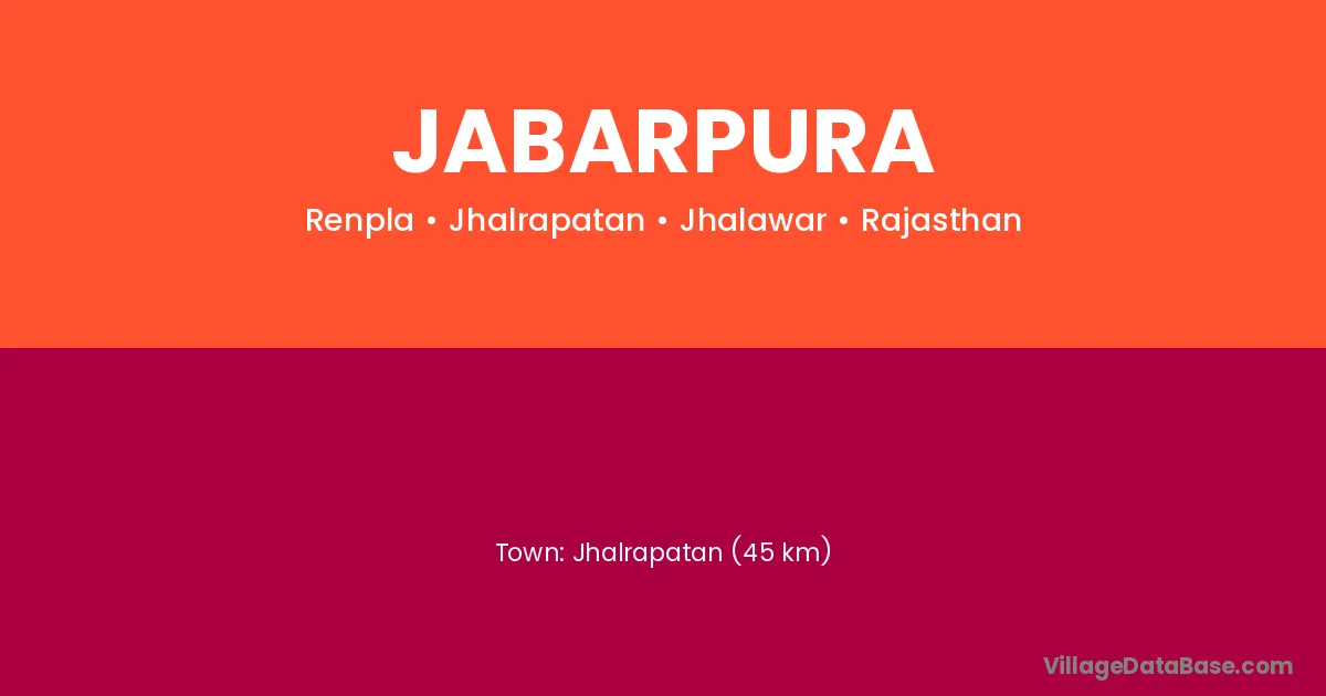 Jhalrapatan (45 km) is the nearest town to Jabarpura village for major economic activities and is located approximately 45 km away.