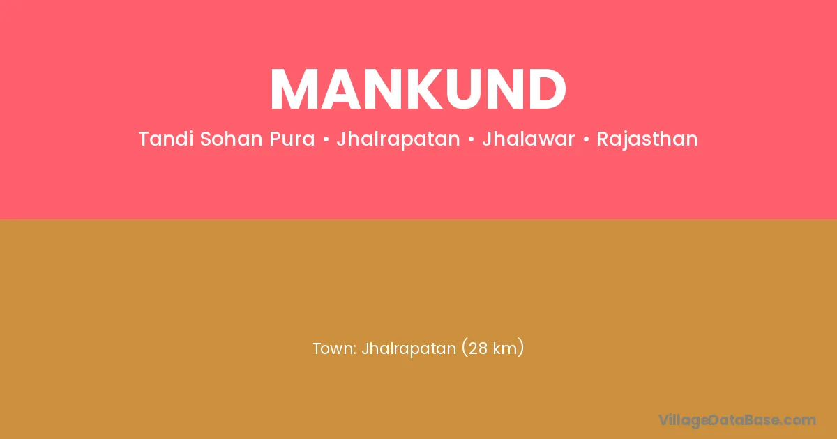 Jhalrapatan (28 km) is the nearest town to Mankund village for major economic activities and is located approximately 28 km away.