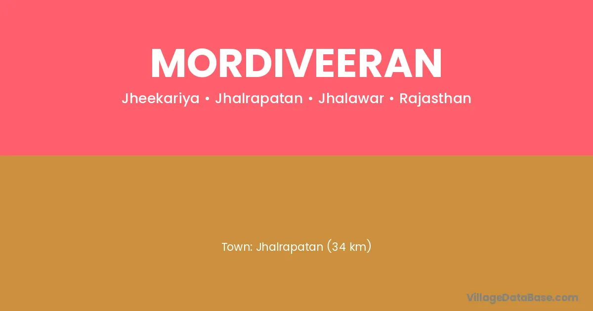 Jhalrapatan (34 km) is the nearest town to Mordiveeran village for major economic activities and is located approximately 34 km away.