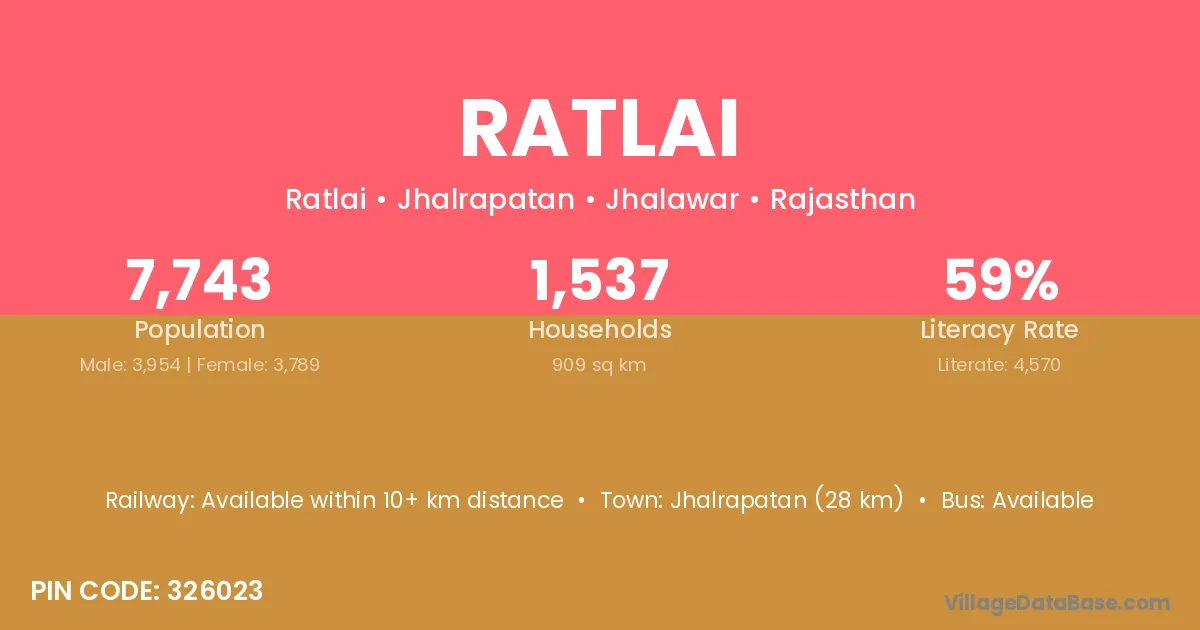 Jhalrapatan (28 km) is the nearest town to Ratlai village for major economic activities and is located approximately 28 km away.