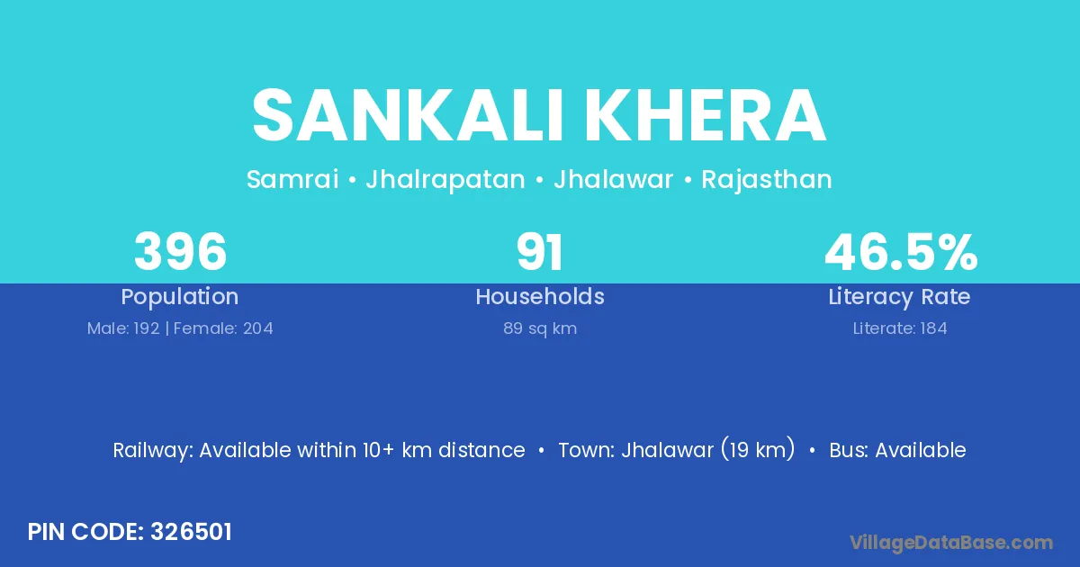 Jhalawar (19 km) is the nearest town to Sankali Khera village for major economic activities and is located approximately 19 km away.