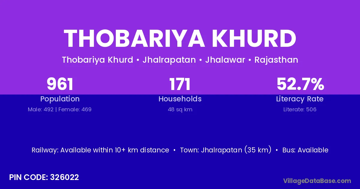 Thobariya Khurd village has a total population of 961 people, of which 492 are males and 469 are females.