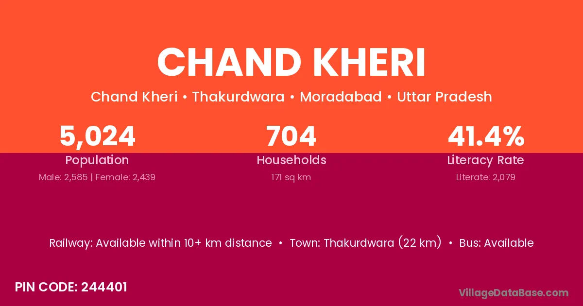 Chand Kheri village has a total population of 3,769 people, of which 1,939 are males and 1,830 are females.