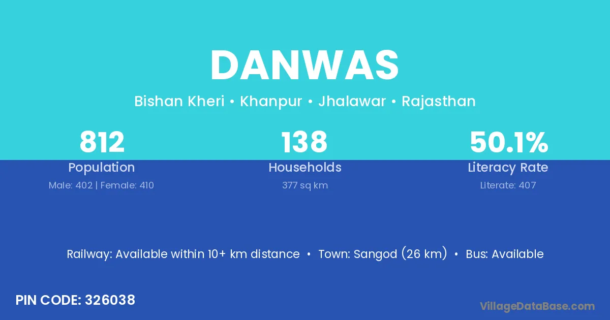 Sangod (26 km) is the nearest town to Danwas village for major economic activities and is located approximately 26 km away.