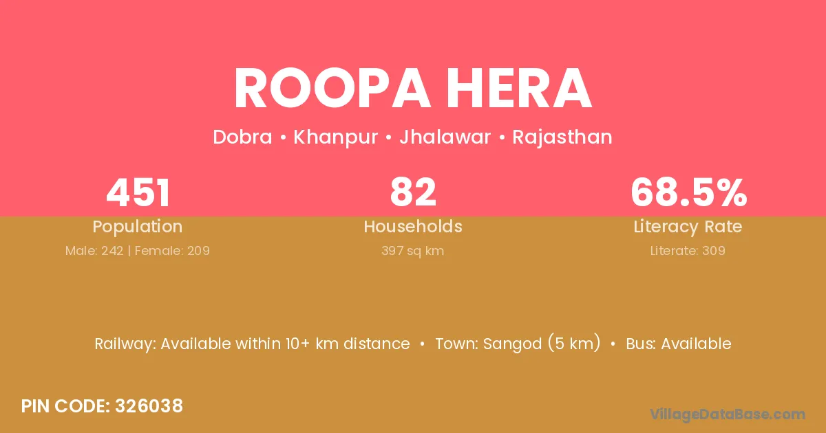 According to Census 2011 information, the village code of Roopa Hera village is 326038.