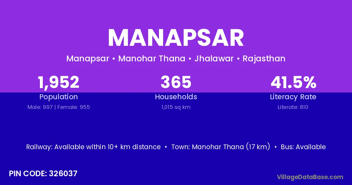 Manohar Thana (17 km) is the nearest town to Manapsar village for major economic activities and is located approximately 17 km away.