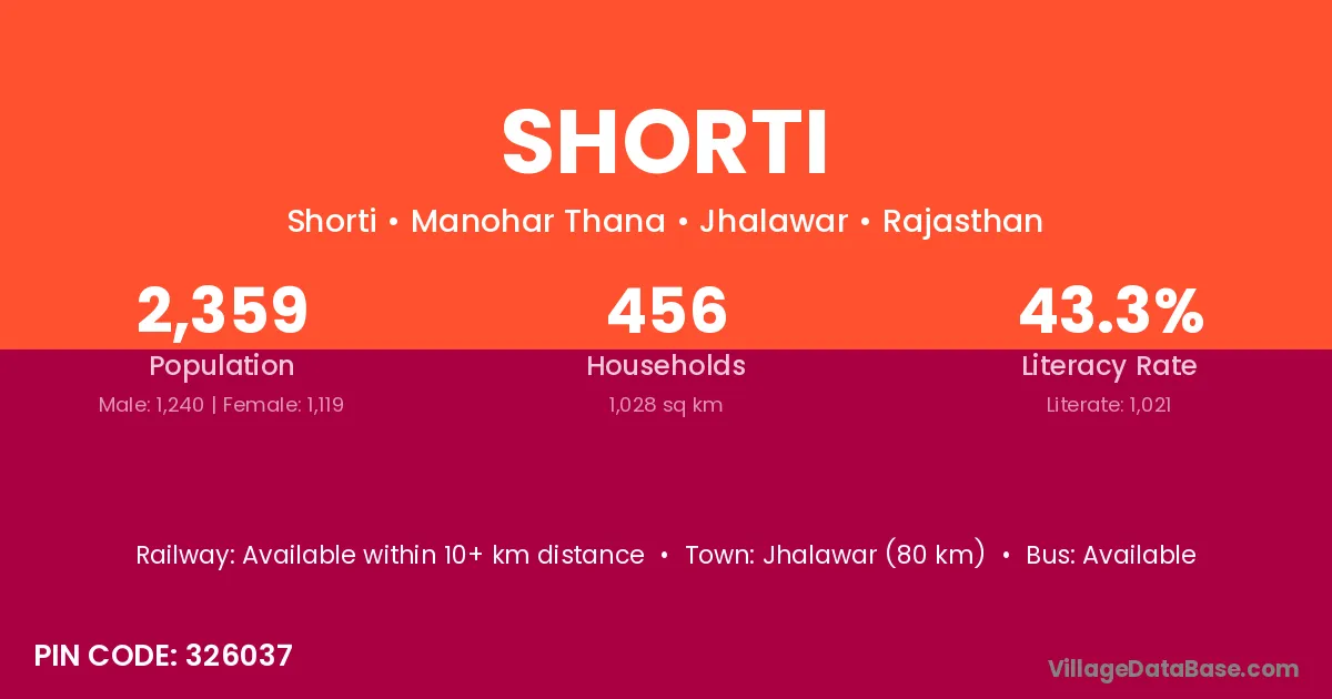 Jhalawar (80 km) is the nearest town to Shorti village for major economic activities and is located approximately 80 km away.