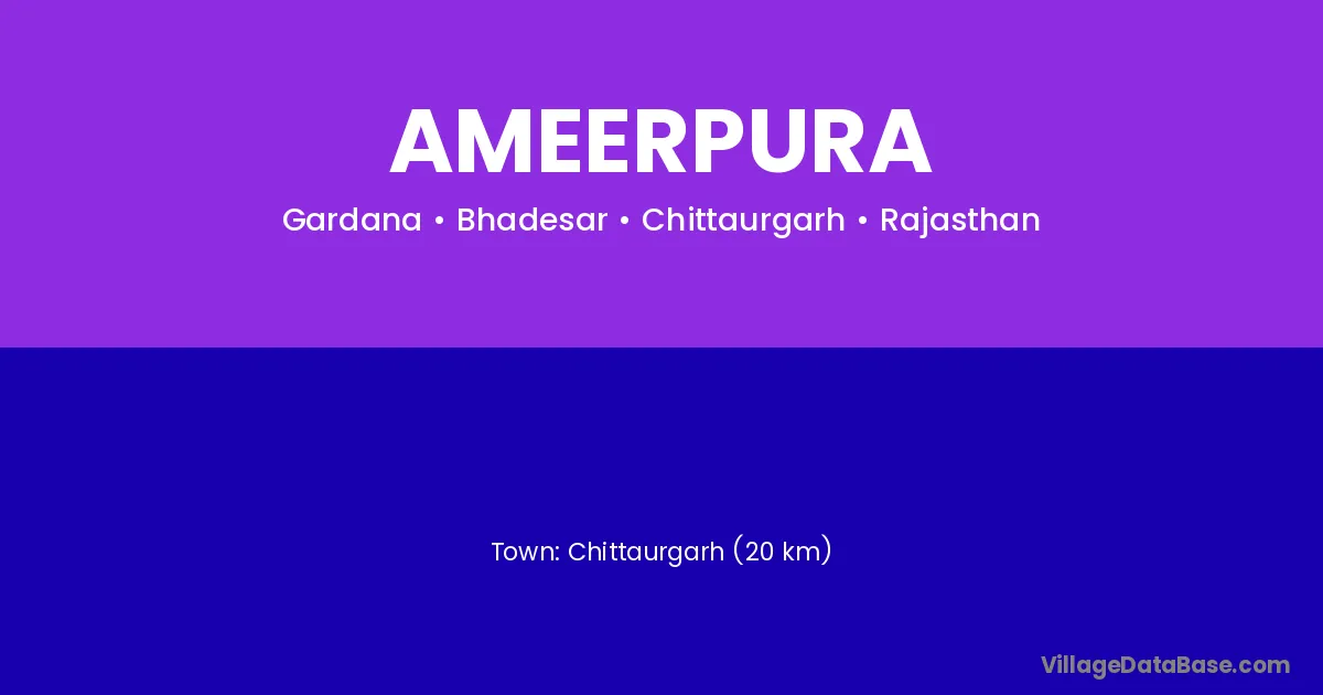 Jhalawar (65 km) is the nearest town to Ameerpura village for major economic activities and is located approximately 65 km away.