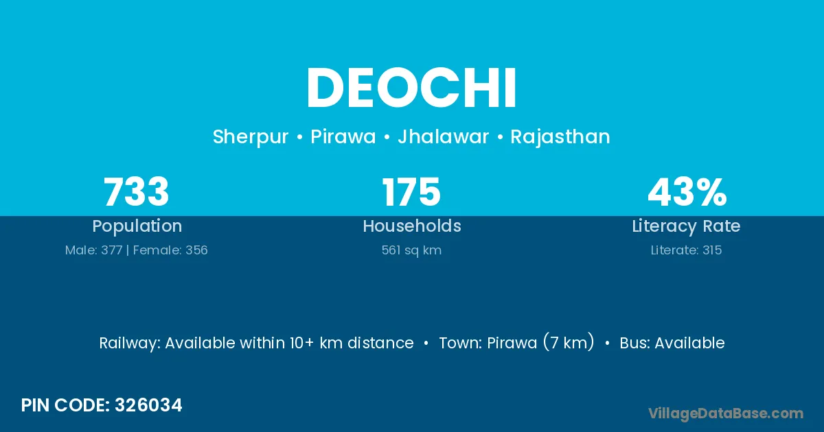 Pirawa (7 km) is the nearest town to Deochi village for major economic activities and is located approximately 7 km away.
