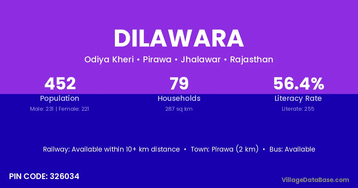 Pirawa (2 km) is the nearest town to Dilawara village for major economic activities and is located approximately 2 km away.