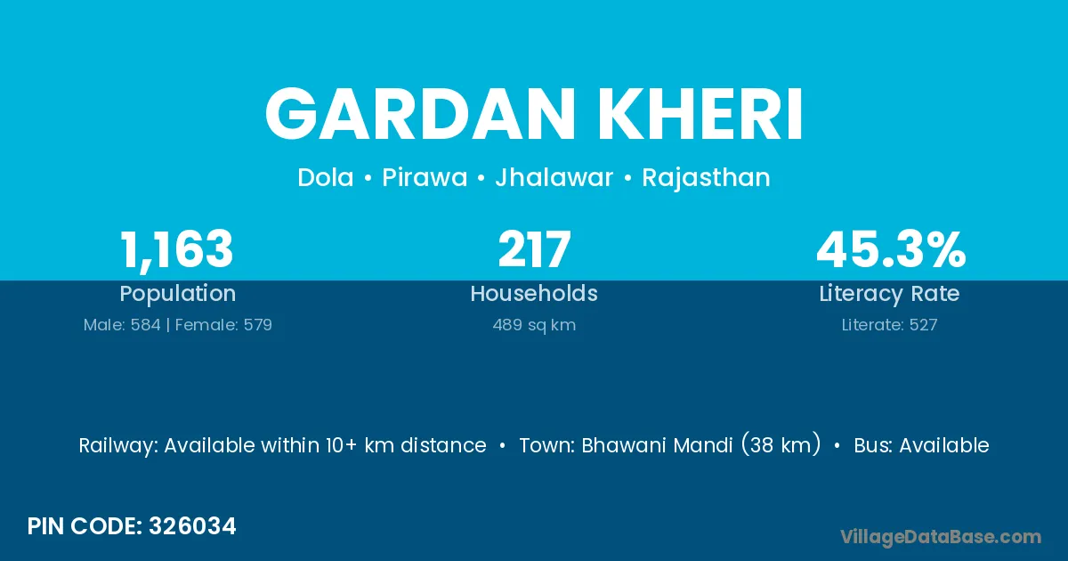 According to Census 2011 information, the village code of Gardan Kheri village is 326034.