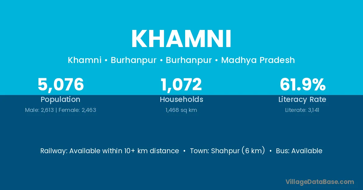 According to Census 2011 information, the village code of Khamni village is 326513.