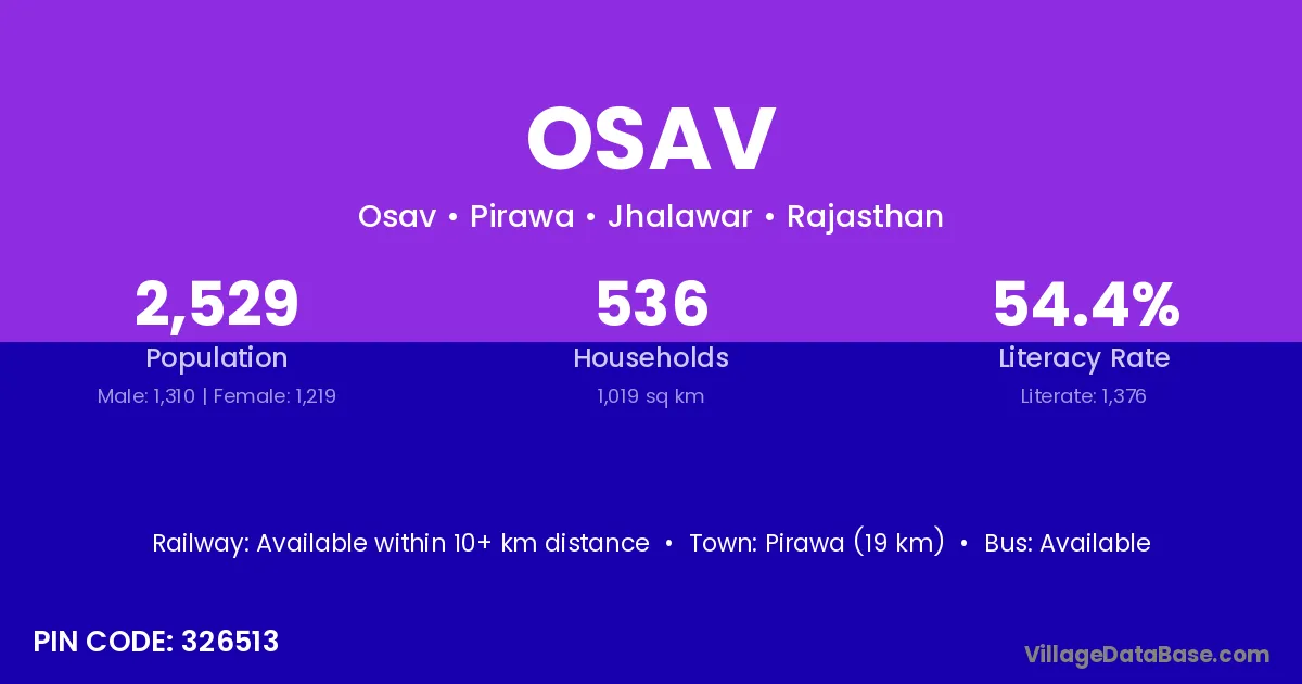 Pirawa (19 km) is the nearest town to Osav village for major economic activities and is located approximately 19 km away.