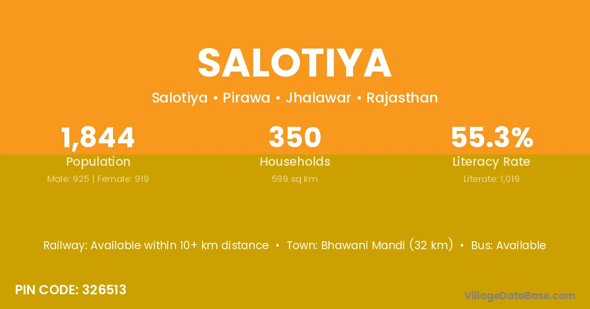 Salotiya village has a total population of 1,844 people, of which 925 are males and 919 are females.