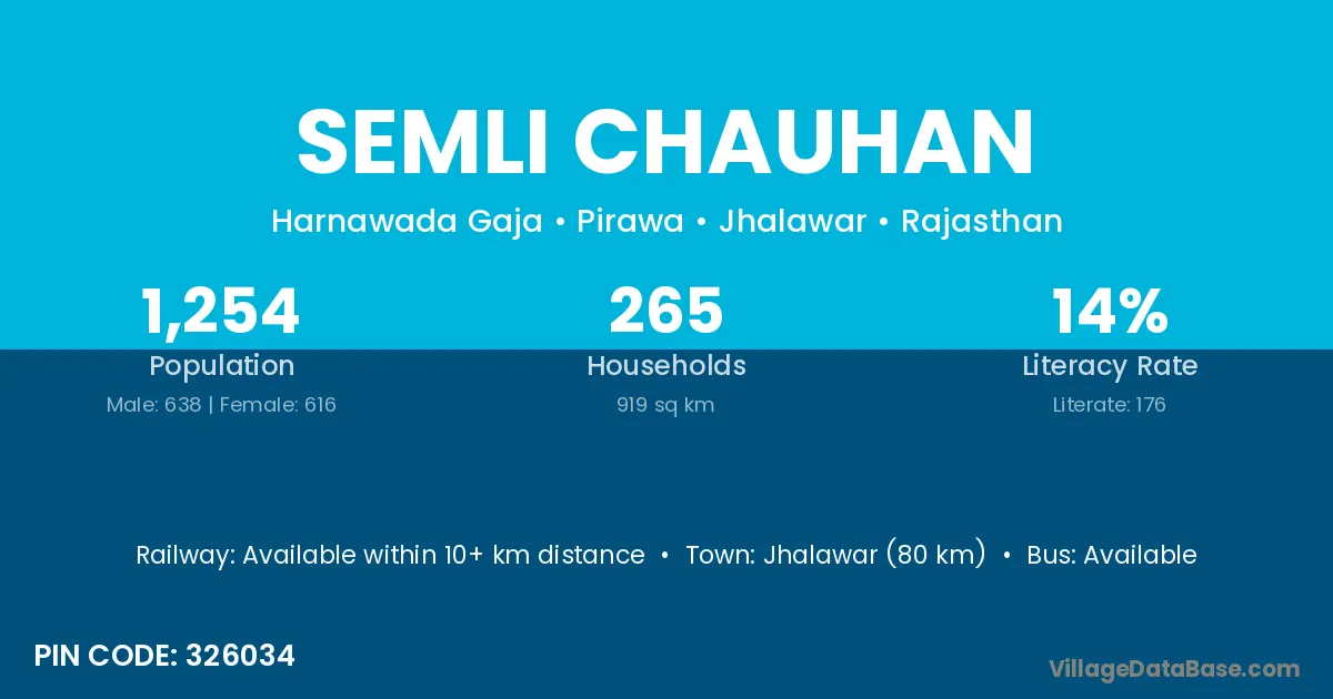 Jhalawar (80 km) is the nearest town to Semli Chauhan village for major economic activities and is located approximately 80 km away.