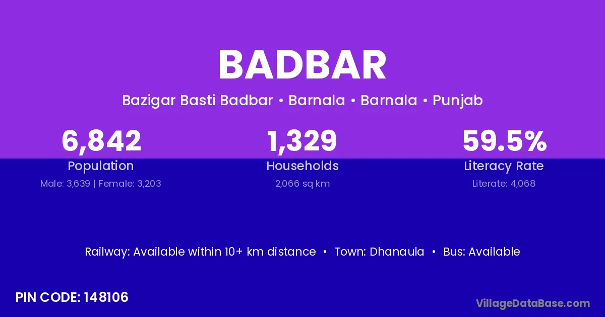 There are approximately 942 households in Badbar village.