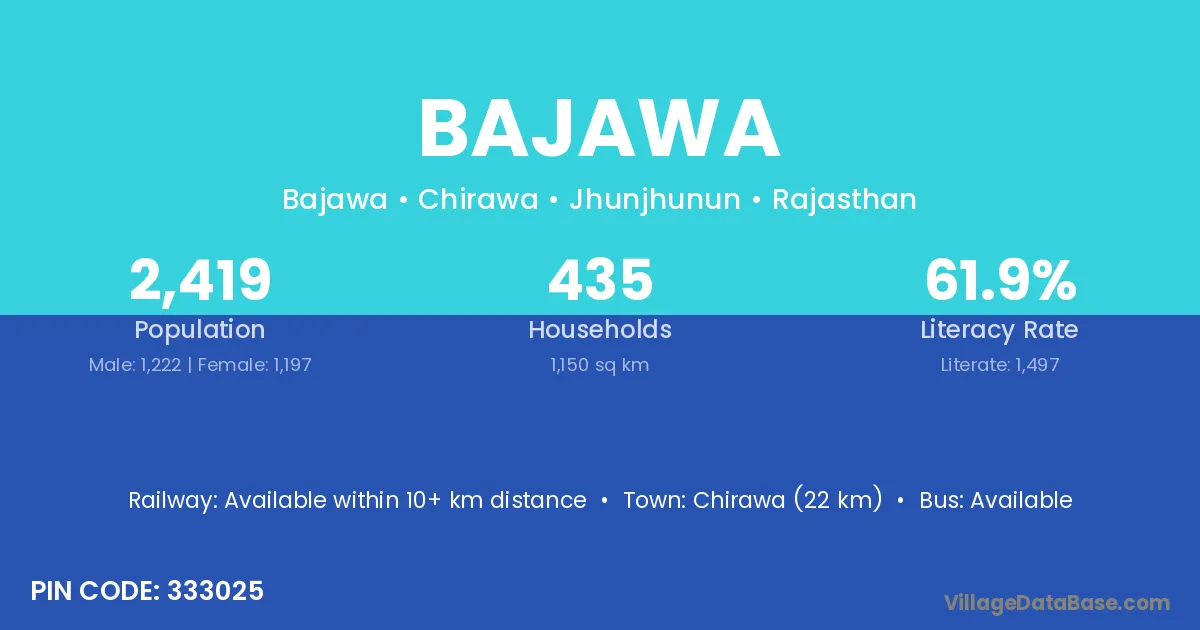 Bajawa village is located in the Chirawa Tehsil of the Jhunjhunun district in Rajasthan .
