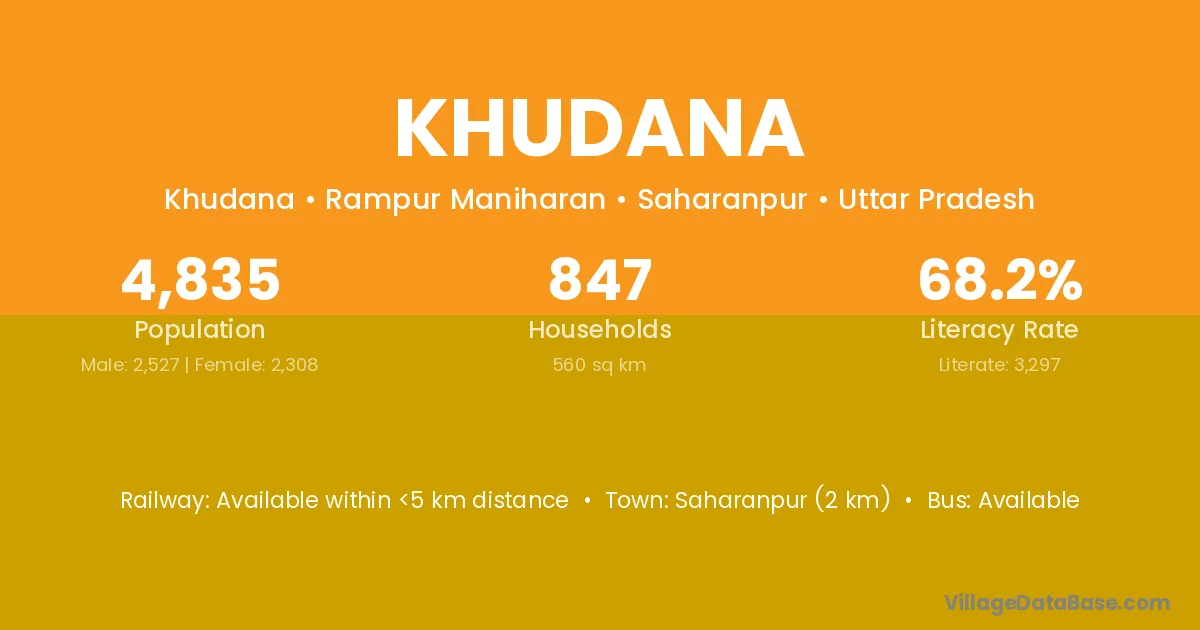 Khudana village has a total population of 3,040 people, of which 1,528 are males and 1,512 are females.