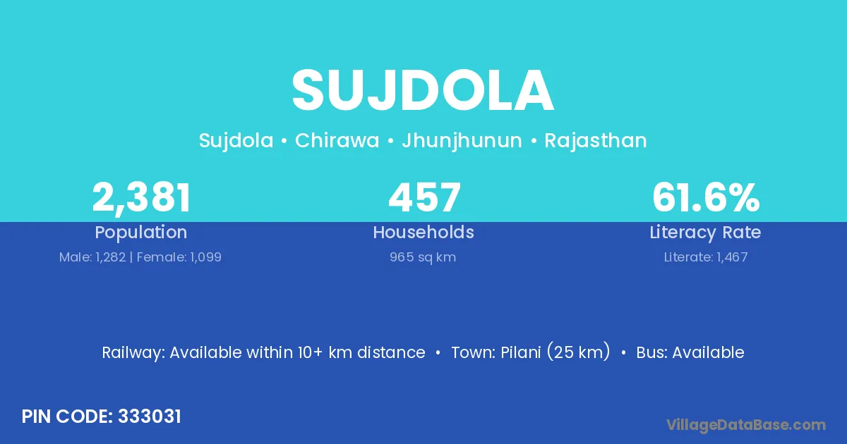 Pilani (25 km) is the nearest town to Sujdola village for major economic activities and is located approximately 25 km away.