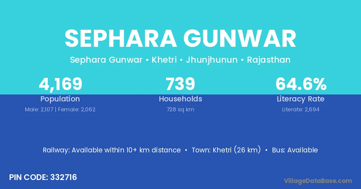 Khetri (26 km) is the nearest town to Sephara Gunwar village for major economic activities and is located approximately 26 km away.