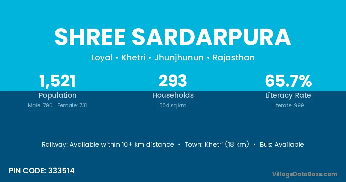 Shree Sardarpura village has a total population of 1,521 people, of which 790 are males and 731 are females.
