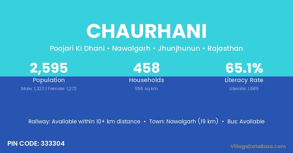 Nawalgarh (19 km) is the nearest town to Chaurhani village for major economic activities and is located approximately 19 km away.