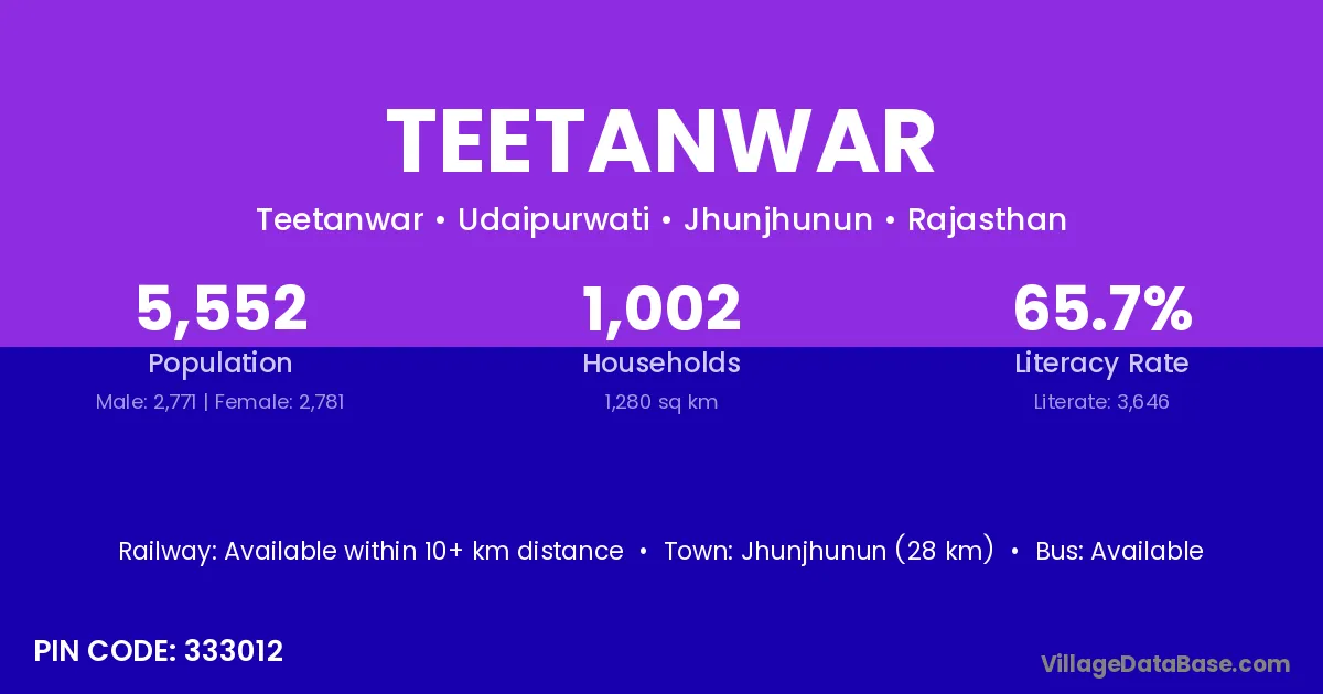 According to Census 2011 information, the village code of Teetanwar village is 333012.