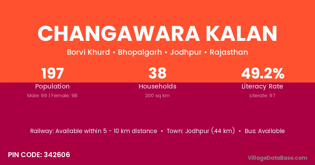 Jodhpur (44 km) is the nearest town to Changawara Kalan village for major economic activities and is located approximately 44 km away.
