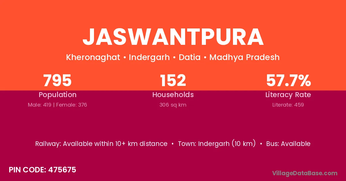 Jaswantpura village has a total population of 1,208 people, of which 627 are males and 581 are females.