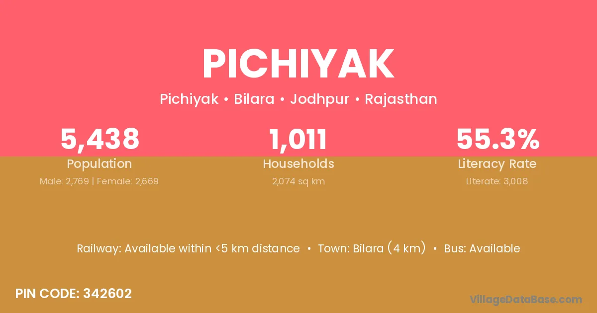 Bilara (4 km) is the nearest town to Pichiyak village for major economic activities and is located approximately 4 km away.