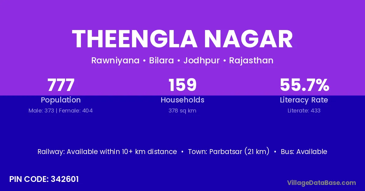 Parbatsar (21 km) is the nearest town to Theengla Nagar village for major economic activities and is located approximately 21 km away.