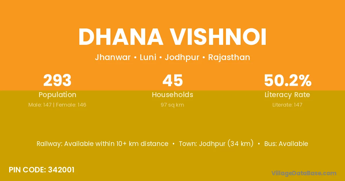 Dhana Vishnoi village has a total population of 293 people, of which 147 are males and 146 are females.