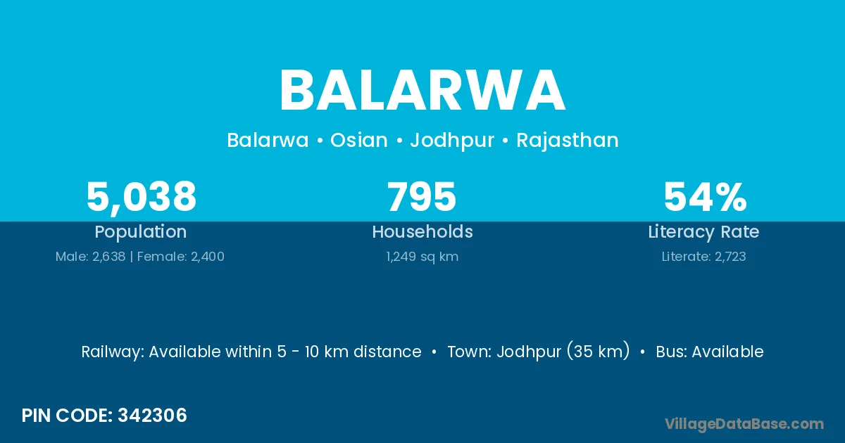 Jodhpur (35 km) is the nearest town to Balarwa village for major economic activities and is located approximately 35 km away.