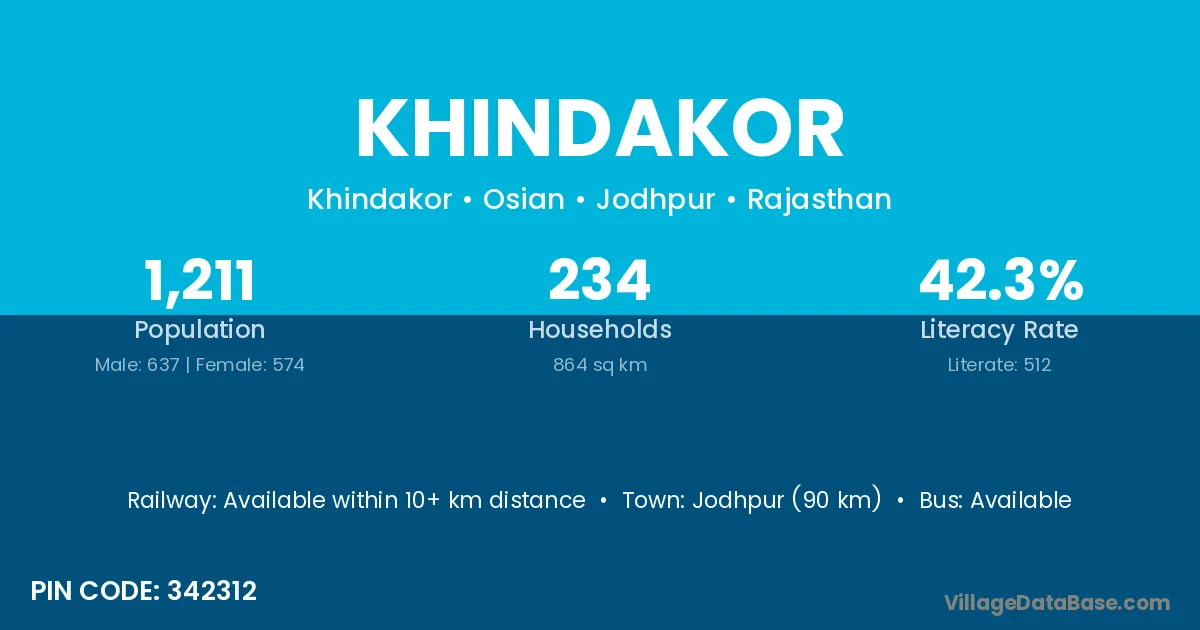 Jodhpur (90 km) is the nearest town to Khindakor village for major economic activities and is located approximately 90 km away.