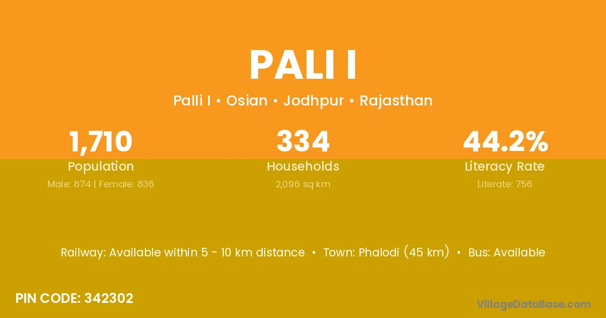Phalodi (45 km) is the nearest town to Pali I village for major economic activities and is located approximately 45 km away.