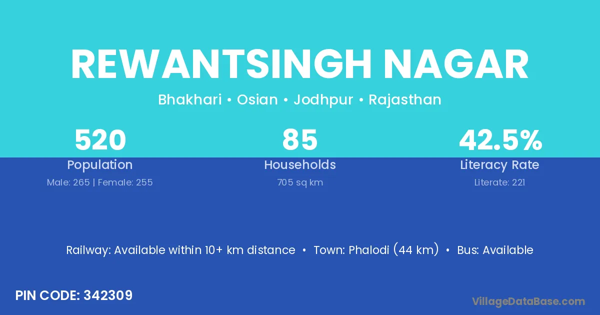 Phalodi (44 km) is the nearest town to Rewantsingh Nagar village for major economic activities and is located approximately 44 km away.
