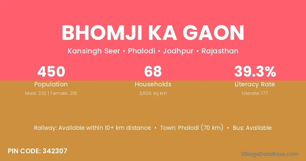 Bhomji Ka Gaon village has a total population of 450 people, of which 232 are males and 218 are females.
