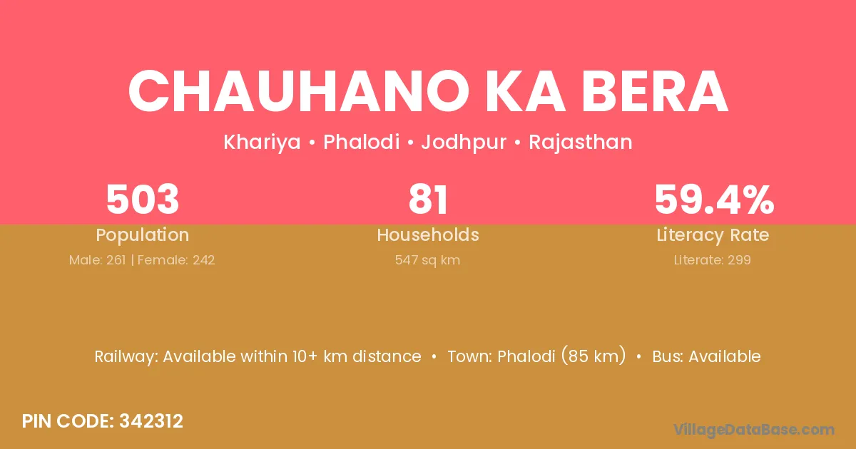 Chauhano Ka Bera village has a total population of 503 people, of which 261 are males and 242 are females.