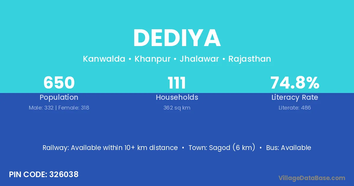 According to Census 2011 information, the village code of Dediya village is 345021.