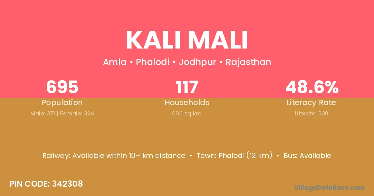Phalodi (12 km) is the nearest town to Kali Mali village for major economic activities and is located approximately 12 km away.