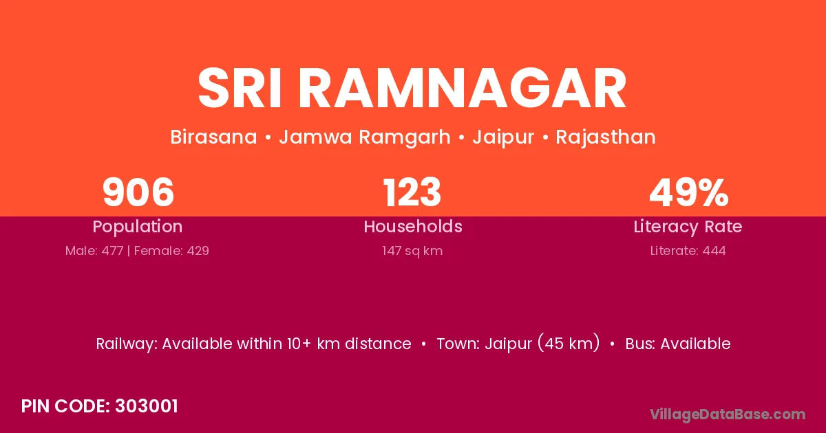 Phalodi (85 km) is the nearest town to Sri Ramnagar village for major economic activities and is located approximately 85 km away.