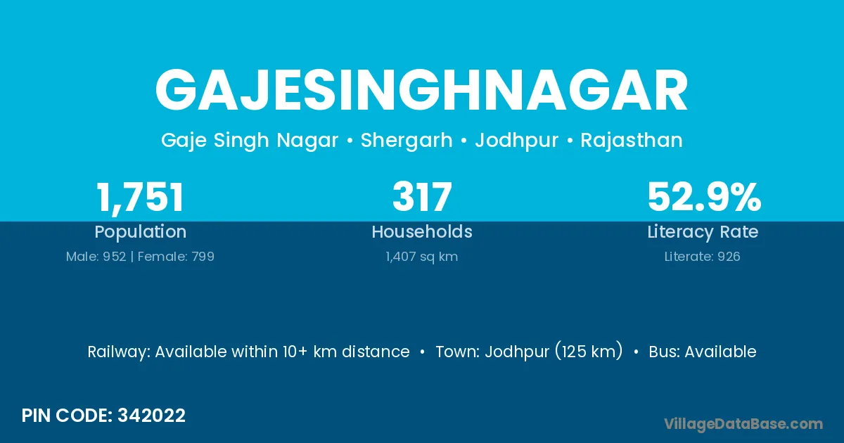 Jodhpur (125 km) is the nearest town to Gajesinghnagar village for major economic activities and is located approximately 125 km away.