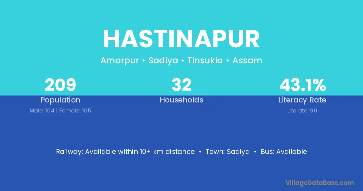 Jodhpur (105 km) is the nearest town to Hastinapur village for major economic activities and is located approximately 105 km away.