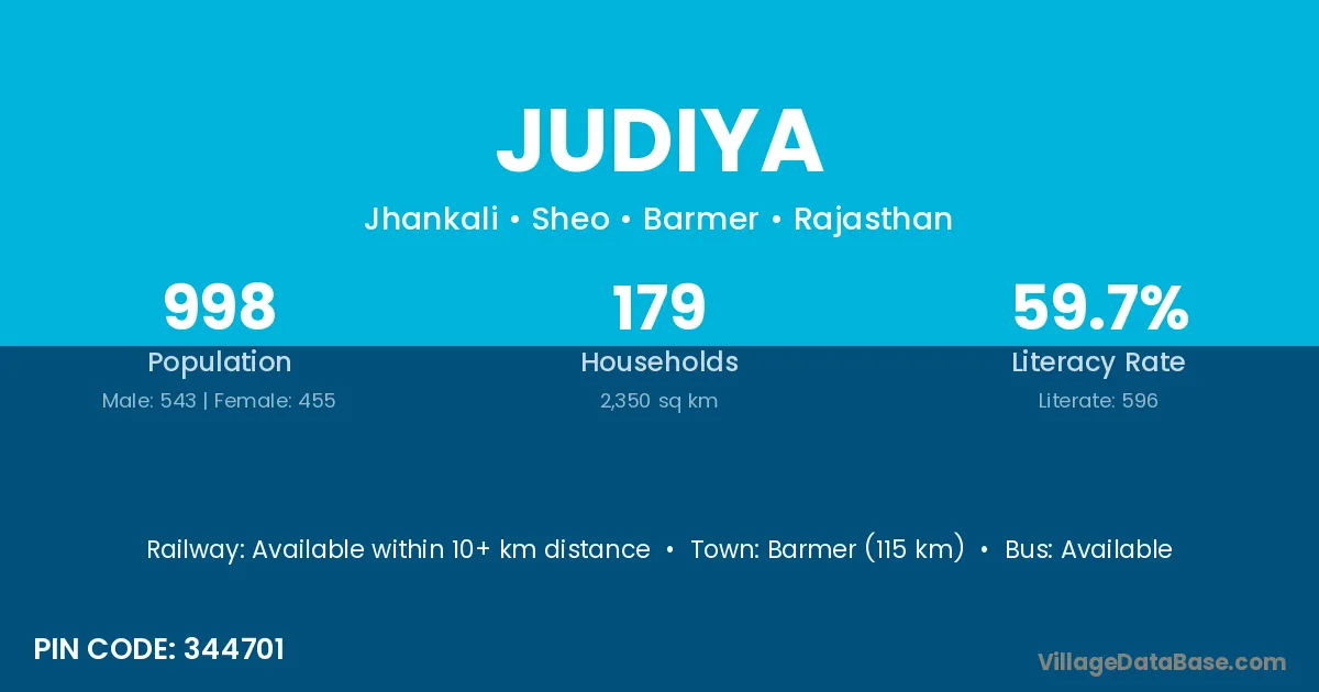 Jodhpur (66 km) is the nearest town to Judiya village for major economic activities and is located approximately 66 km away.