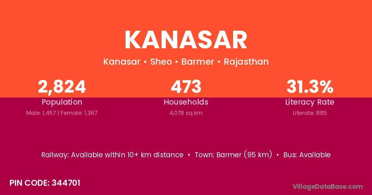According to Census 2011 information, the village code of Kanasar village is 342025.