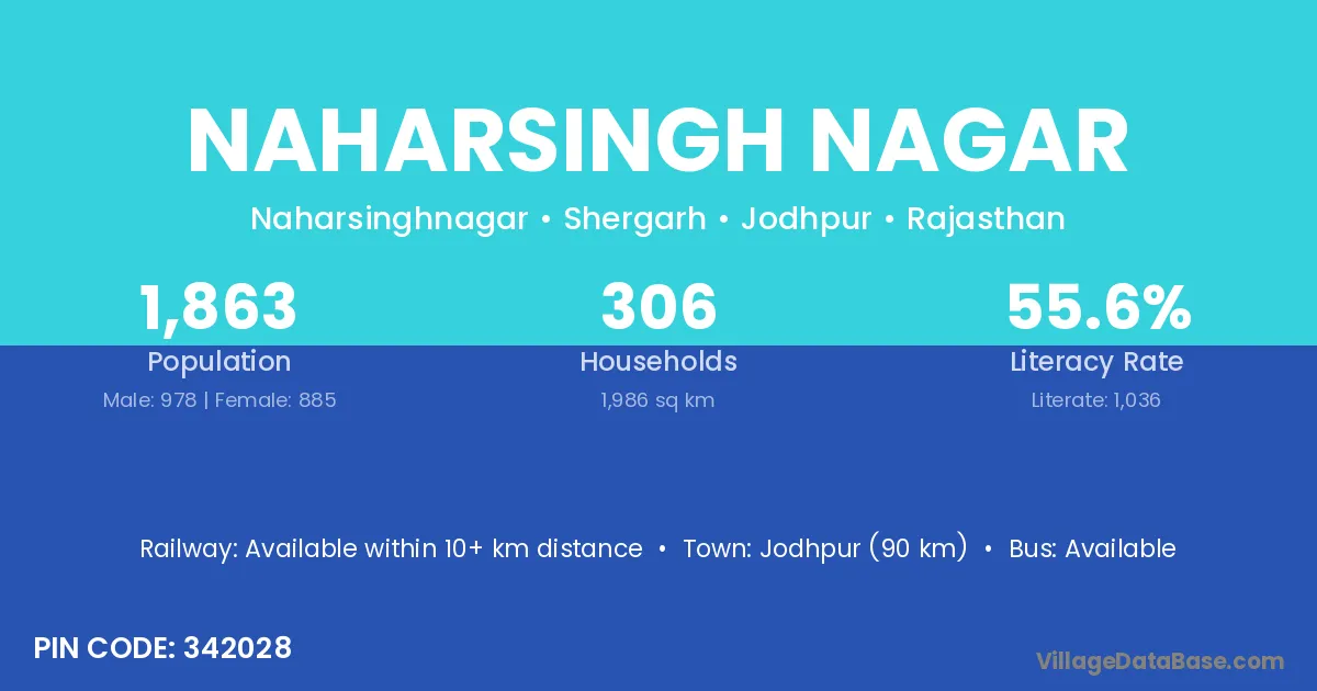 Jodhpur (90 km) is the nearest town to Naharsingh Nagar village for major economic activities and is located approximately 90 km away.