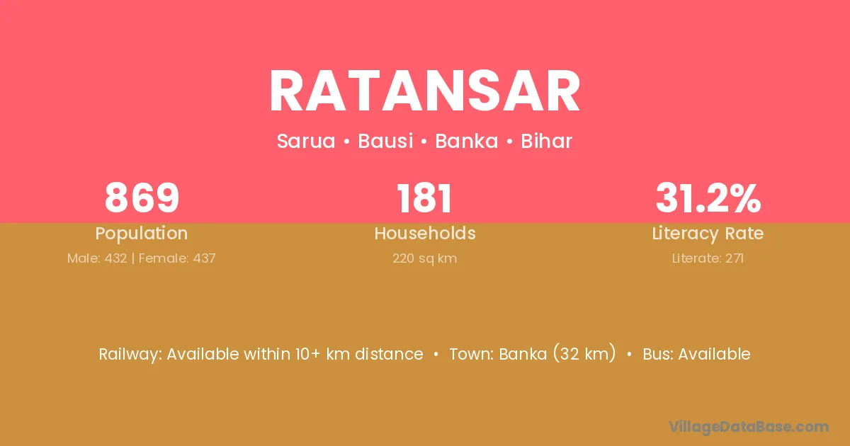 The literacy rate of Ratansar village is 36.42%. Male literacy stands at 39.74% and female literacy at 32.88%.